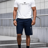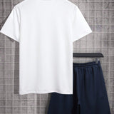 Conjunto de 2 piezas para hombre con camiseta estampada con letras y shorts, minimalista casual para usar todos los dias con comodidad