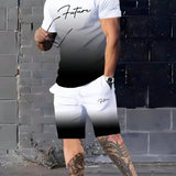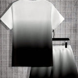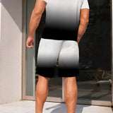 Conjunto deportivo casual estilo retro para hombres - tela de punto de poliester transpirable, ligeramente elastica, combinacion de camiseta cuello redondo y pantalones cortos, lavable a maquina