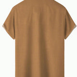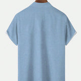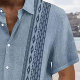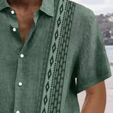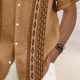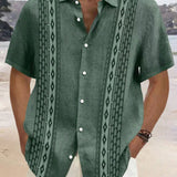Camisa de manga corta con botones y patron geometrico retro para hombre de talla grande