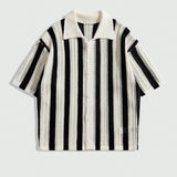 Romwe men street life camiseta casual de punto de manga corta de una sola botonadura a rayas para hombre