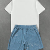 Manfinity emrg conjunto de camiseta de manga corta y pantalones cortos de moda sencilla para hombre talla grande, adecuado para el verano