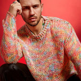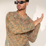Manfinity homme sueter de cuello redondo casual de manga larga con estampado de bloques de color para hombre