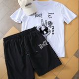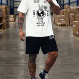 Conjunto de 2 piezas para hombres que incluye camiseta con estampado de gesto de la tierra y pantalones cortos con cordon en la cintura, camiseta casual de cuello redondo de manga corta y pantalones cortos de unicolor