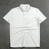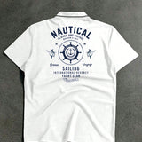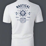Camisa tipo polo blanca casual de manga corta con botones y estampado de letras en la parte delantera, cuello de solapa, diseno retro y casual, apropiada para que el esposo salga, se combine con pantalones casuales, adecuada para viajes, vacaciones,
