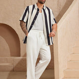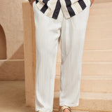Easevo pantalones largos casuales blancos holgados con tejido jacquard para hombres de talla grande