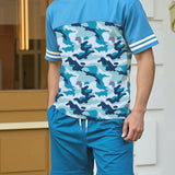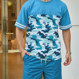 Manfinity dauomo conjunto de camiseta de manga corta y pantalones cortos de camuflaje de verano casual para hombre