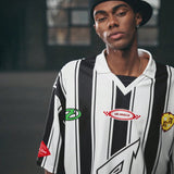 Manfinity streetez camisa tipo polo de manga corta de punto a rayas negras y blancas para hombre
