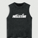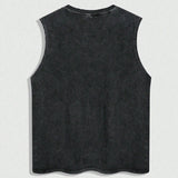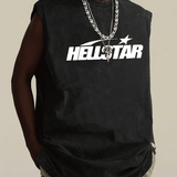 Camiseta sin mangas casual de hombre talla grande con estampado de letra de estrella nueva, estilo vintage de moda callejera y2k, versatil cuello redondo, tipo lavado, adecuado para uso diario