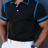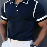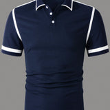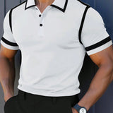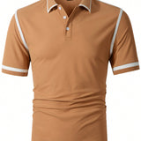 Manfinity mode camisa polo de hombre con ribete de contraste, manga corta, estilo minimalista, adecuado para el verano