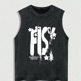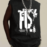 Camiseta de tirantes casual y de calle para hombre talla grande, con estampado de estrella y letras en cuello redondo, de ajuste versatil, estilo y2k apto para uso diario