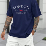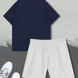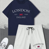 Manfinity homme conjunto de 2 piezas de talla grande, camiseta de manga corta con estampado de letras y shorts con bolsillo para hombres