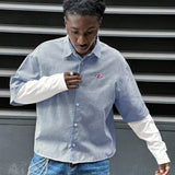 Manfinity streetez camisa holgada de hombre tejida a rayas, con apariencia de 2 piezas