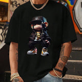 Camisa casual de hombre de cuello redondo y manga corta con estampado de figura, para uso diario