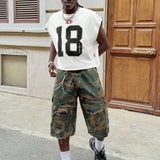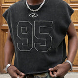 Manfinity streetez chaleco de cuello redondo para hombres con panel trasero estampado de ladrillos y etiqueta bordada