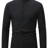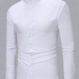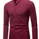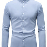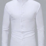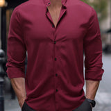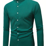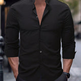 Manfinity mode camisa casual de oficina de manga larga y un solo boton de unicolor para hombre