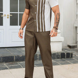 Manfinity homme conjunto de 2 piezas de camisa de manga corta con botones y pantalones a rayas para hombre