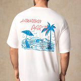 Manfinity modomio camiseta de manga corta de cuello redondo suelta con estampado de arbol de coco y olas, de corte casual de punto para hombres