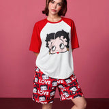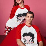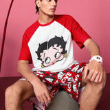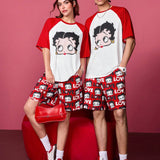 Betty boop x conjunto de camiseta y pantalones cortos de hombre con bloque de color y estampado de dibujos animados, conjunto de ropa casual de verano
