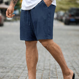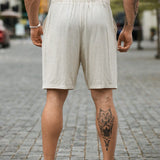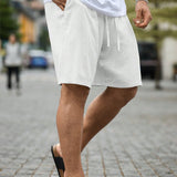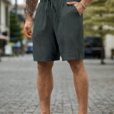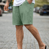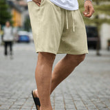 Manfinity rsrt shorts de hombre talla grande de color liso con cordon y bolsillos, pantalones cortos de verano casuales de lino lisos para hombres