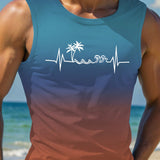 Manfinity rsrt camiseta de tirantes casual de hombre con estampado de palmeras y cuello redondo