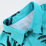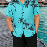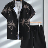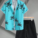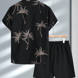 Conjunto casual de 2 piezas para hombre con camisa de manga corta con cuello y estampado de arboles de palma, y shorts con cordon elastico, para primavera/verano