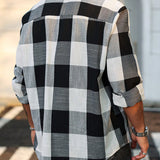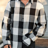 Manfinity homme camisa informal de manga larga con una sola hilera de botones a cuadros para hombres de talla grande