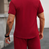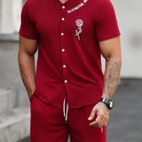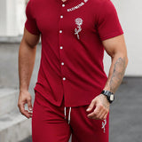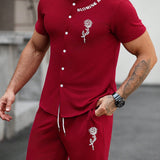 Manfinity homme conjunto informal de 2 piezas de talla grande para hombre, compuesto por camisa de manga corta con botones de una sola botonadura con estampado de letras y flores, y pantalones cortos