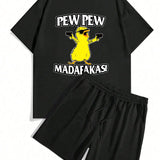 Conjunto de camiseta casual de manga corta de cuello redondo y unicolor talla grande pantalones cortos con cordon en la cintura para hombres