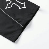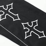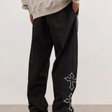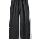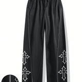 Pantalones rectos de talle con cordon, estampado de cruz y ribete de contraste, para hombres de talla grande de uso casual