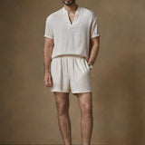 Manfinity modomio conjunto de 2 piezas de camiseta de manga corta tipo sueter de cuello en v holgada y pantalones cortos para hombre, de unicolor, adecuado para uso diario