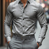 Camisa casual asimetrica a rayas para hombres, de tela super premium, esencial para el casual business, con alta tasa de devoluciones