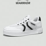 Warrior par de zapatillas deportivas para hombres de la serie warrior, nuevas para 2025, de estilo de correr de cana baja con cordones, en color blanco, con parte superior de malla y pu, suela plana blanda, adecuadas para excursionismo y correr al aire
