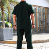 Manfinity homme conjunto de 2 piezas talla grande para hombre compuesto por camisa de manga corta de un solo pecho en unicolor y pantalones