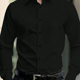 Manfinity mode camisa de vestir de manga larga y unicolor para hombres tallas grandes, adecuada para el verano