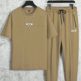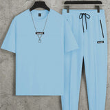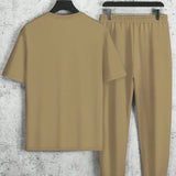 Manfinity homme conjunto de 2 piezas con camiseta de manga corta de cuello redondo y pantalones cortos de unicolor para hombres, minimalista y de moda, apto para el verano