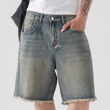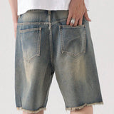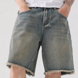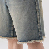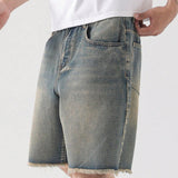 Manfinity emrg pantalones cortos de mezclilla bermuda relajados con bolsillos desgastados para hombres de talla grande