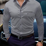 Manfinity homme camisa de manga larga con botones de corte holgado para hombres