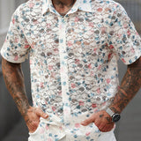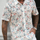 Manfinity casualcool camisa casual de vacaciones para hombre con manga corta, estampado floral y ribete de encaje