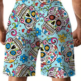 Pantalones cortos con estampado de calavera, cintura con cordon y bolsillos para hombre, shorts casuales unicos y a la moda para playa y vacaciones