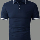 Manfinity homme camisa polo de manga corta con ribete de contraste casual para hombre, de verano