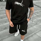 Conjunto de 2 piezas de ropa deportiva casual de verano para hombre: camiseta de manga corta y pantalones cortos con cordon en la cintura, estampado de tigre, ajuste regular, adecuado para regalos para esposo/novio, golf, pesca, baloncesto, campamento,