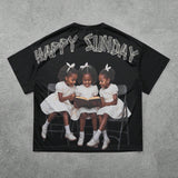 Manfinity legnd camiseta de manga corta de cuello redondo con estampado de retrato y letra para hombres talla grande, de verano