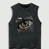 Camiseta de tirantes con estampado de letra en ingles treo, estilo y2k, estampado grafico en ingles, informal, de uso diario, para hombre talla grande
