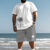 Conjunto de camiseta y shorts con estampado de letras hawaianas para hombres de talla grande