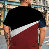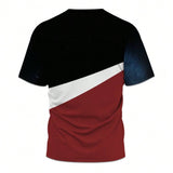 Camiseta versatil y de moda para hombres de talla grande, 3 colores: negro, rojo, blanco, con punos de manga de contraste con estampado de galaxia, comoda y transpirable de manga corta para talla grande
