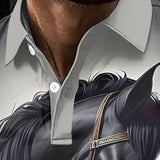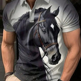 Seleccion de camisas polo de manga corta con estampado para hombres en colores negro, gris y blanco