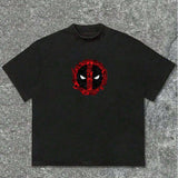 Marvel camiseta negra de manga corta y cuello redondo con estampado del logo de deadpool, informal para hombre, de verano