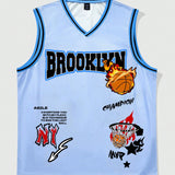 Romwe men chaleco casual de hombre con cuello en v, estampado de bloque de color y letra