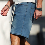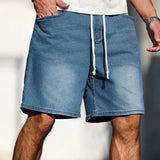 Manfinity homme pantalones cortos jeans informales de verano con cordon en la cintura, holgados, para hombres de talla grande