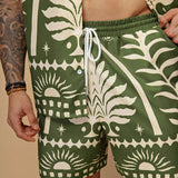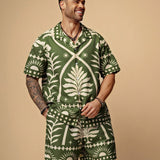 Easevo conjunto de camisa de tejido estampado holgada y shorts para hombres de talla grande